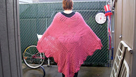 Finally got a pic of her in the poncho.... She is 6 ft tall and this poncho is wonderfully huge! It is the same front and back, and it took a several months to make in my spare time (what is that... spare time!LOL), but well worth the effort. She loves it and several people want one, but of course don't want to pay for my time. But then we crafters know how that is... right!?!?!?
